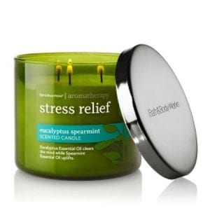 Bath & Body Works Aromatherapy Stress candle is scented with Eucalyptus Spearmint. The candle is available in a 14.5 oz size and burns for 25-45 hours. The measurements of the candle are 4″ by 3.5″ tall. You don’t have to worry about this 3-wick candle burning out and the candle features a blend of vegetable wax.