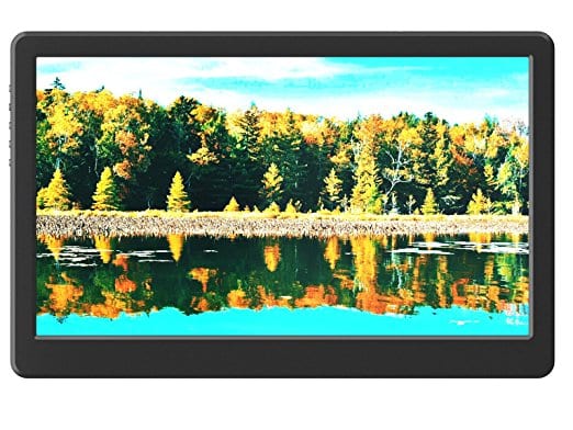 This compact travel monitor has a 11.6 inch IPS panel with Full-HD 1080p screen resolution. Its one of the brightest portable monitors on our list featuring the brightness level of 300 cd/m2 with the contrast ratio 800:1. This display produces brilliant and vibrant color thanks to the 16.7 Million true colors for color precision and clarity. When it comes to connectivity ports, this travel monitor is equipped with HDMI, VGA, MiniDP and a special Camera Mount. You can connect this monitor with your DSLR camera.
